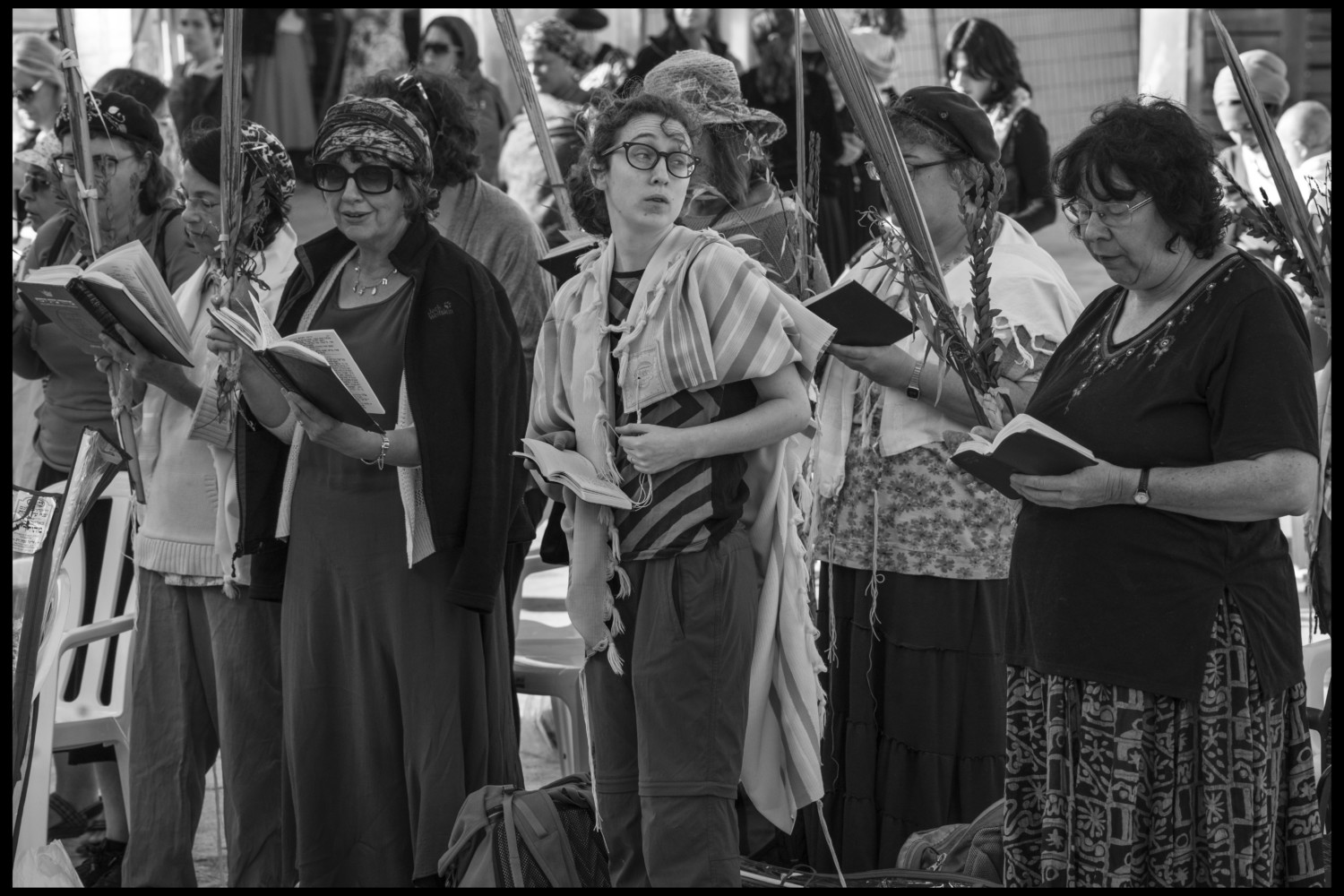 Abbas Women of the Wall, a controversial feminist group whose aim is to follow the rituals usually used by men, celebrate Sukkot at the Western Wall while holding the four species. Jerusalem, Israel. 2016. © Abbas | Magnum Photos