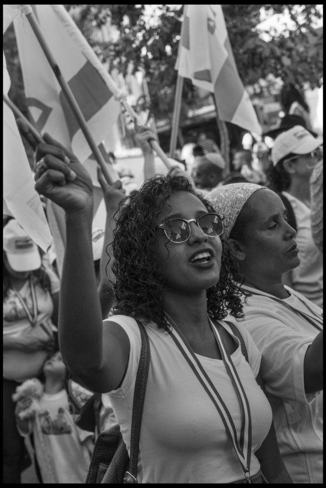 Abbas Israelis and Christians on the Jerusalem March, an annual festive parade in the middle of the week long celebrations of Sukkot. An Ethiopian woman holds the Israeli flag. Jerusalem, Israel. Octobe (...)