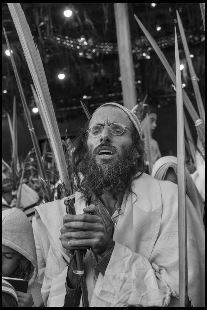 Abbas A Jew celebrates Sukkot by praying under a sukhat, a hut at the Western Wall, while holding the four species. Jerusalem, Israel. October 23, 2016. © Abbas | Magnum Photos